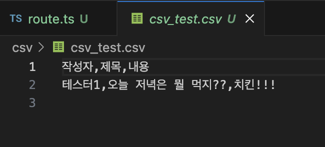 작성했던 글 그대로 csv파일에 정보가 담기게 됩니다.