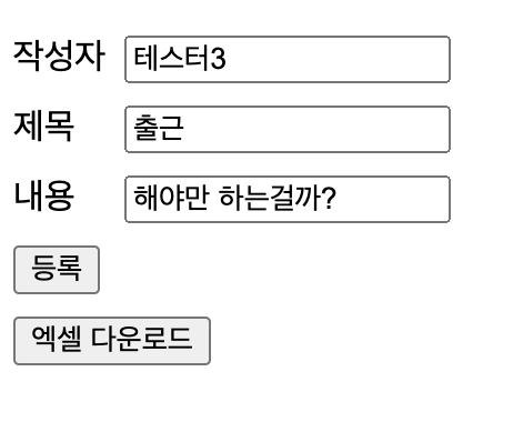 존재해야만 엑셀파일로 변환해서 다운로드 하게끔 됩니다.